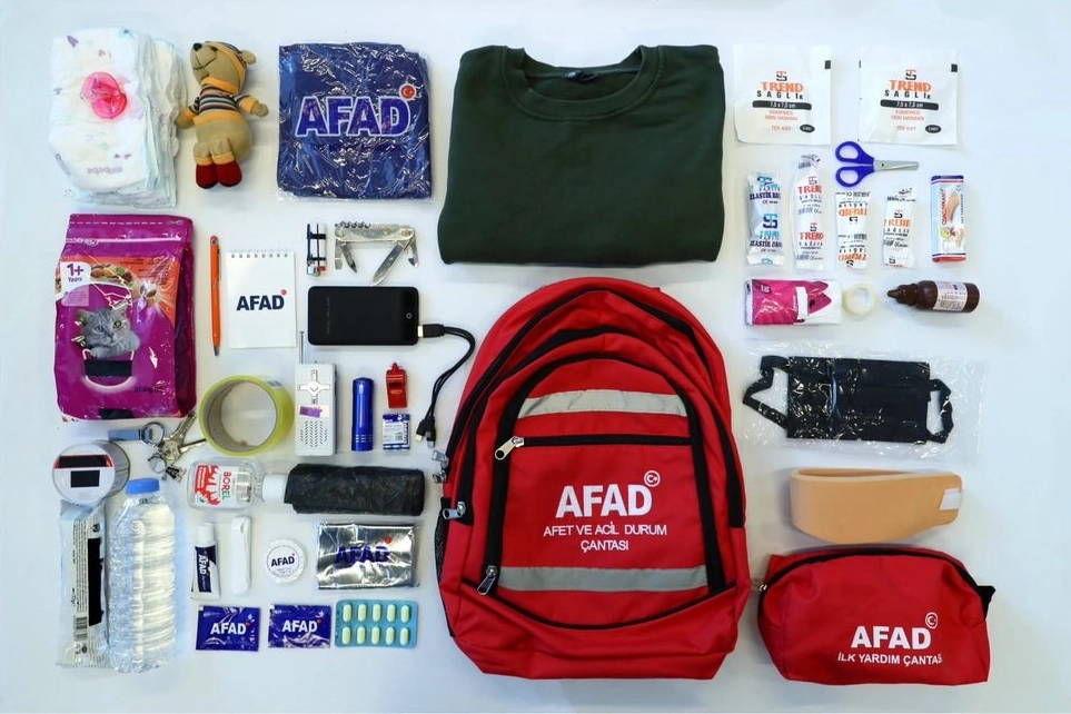 Temel Eşyalar: El feneri, yedek pil, düdük, çok amaçlı çakı, maske ve hijyen malzemeleri.