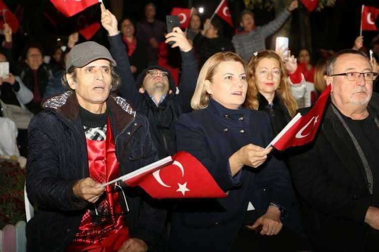 KOCAELİ (İGFA) - Kocaeli'ne bağlı İzmit Belediyesinin katkılarıyla Atatürkçü Düşünce Derneği tarafından 29 Ekim Cumhuriyet Bayramı vesilesiyle Atatürk’e Saygı Yürüyüşü ve konser programı gerçekleştirildi. Yahya Kaptan’da bulunan Süleyman Demirel Kültür Merkezi’nde başlayan yürüyüş Yahya Kaptan Amfide tamamlandı. Yürüyüş programına İzmit Belediyesi Esnaf ve STK Masası Koordinatörleri Birol Sağlam, Nurullah Özer, Muhtar Hizmet Masası Koordinatörü Ali Filiz ve İzmit Belediyesi Basın Danışmanı Cem Şakoğlu katıldı. Yüzlerce vatandaş marşlar eşliğinde coşku dolu bir yürüyüş gerçekleştirdi. Yürüyüşün sona erdiği amfide de İzmit Kent Orkestrası ve Manço Band tarafından konser verildi. Konsere İzmit Belediye Başkanı Fatma Kaplan Hürriyet de katıldı.