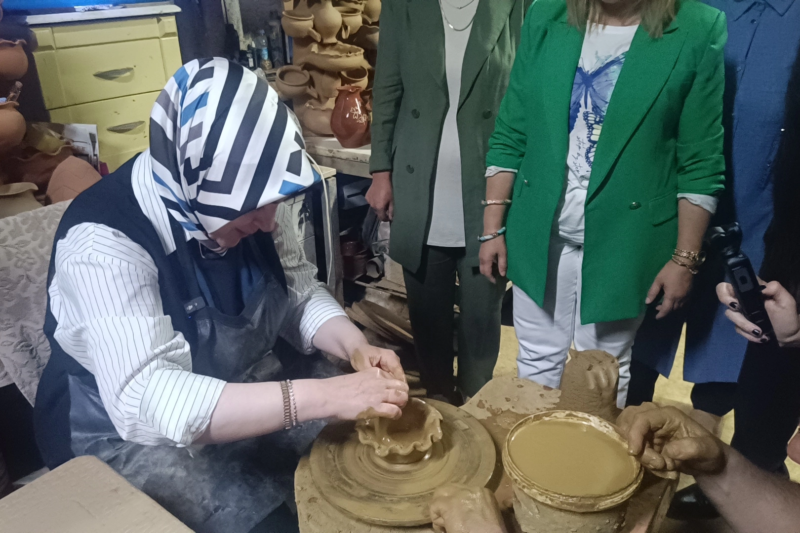 AK Parti Genel Merkez Kadın Kolları Başkanı Tuğba Işık Ercan, Bilecik’in Pazaryeri ilçesinde çömlek çarkının başına geçerek, kendi çömleğini yapan kadın girişimcilerin alın terine ortak oldu.