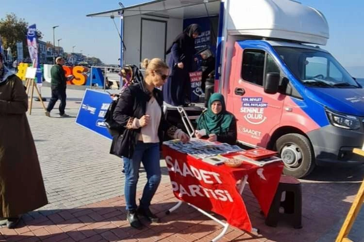 Saadet Partili kadınlar, yoksullukla mücadeleye farkındalık oluşturmak amacıyla hazırladıkları sergi ve stant çalışması vatandaşlardan da ilgi gördü.