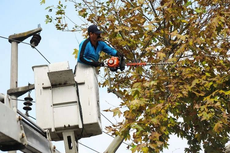 Sonbahar mevsimine girilmesiyle birlikte park ve caddelerde başlatılan budama çalışmaları, çevre güvenliği alınarak özel ekipmanlarla yapılıyor.