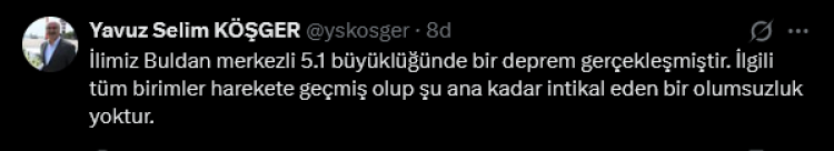 Denizli Valisi Yavuz Selim Köşger, deprem ardından ekiplerin saha taramalarını başlattığı an itibariyle olumsuz bir durum olmadığını duyurdu.
