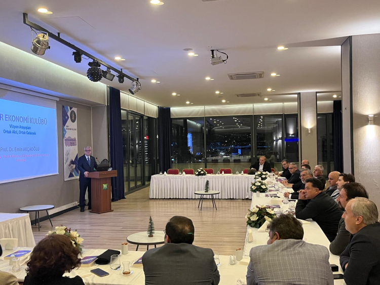 İZMİR (İGFA) - İzmir Ekonomi Kulübü, stratejik öneme sahip "Vizyon Arayışları" toplantı dizisi kapsamında bu ay Manisa Celal Bayar Üniversitesi Öğretim Üyesi Prof. Dr. Emin Akçaoğlu’nu ağırladı. Moderatörlüğünü Dokuz Eylül Üniversitesi Öğretim Üyesi Prof. Dr. Ülviyye Sanılı Aydın’ın üstlendiği toplantıda; iş dünyası, akademi ve kamu temsilcilerine küresel sistemin yeni yol haritası anlatıldı.