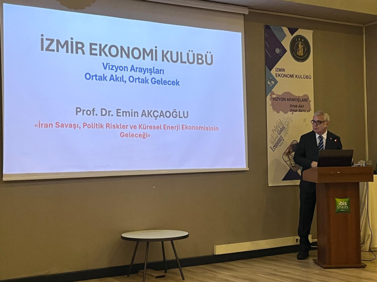 İzmir Ekonomi Kulübü’nün düzenlediği “Ortak Gelecek için Ortak Akıl, Vizyon Arayışları” toplantısı Başkan Dr. Sıddık TOPALOĞLU'nun açılış konuşmasıyla başladı. Açılış konuşmasının ardından söz alan Prof. Dr. Emin Akçaoğlu, küresel enerji piyasalarındaki kırılmaları ve doların dünya ticaretindeki sarsılan tahtını değerlendirdi. Akçaoğlu, "Enerji ticaretinin Yuan gibi yerel para birimlerine kayması, İkinci Dünya Savaşı sonrası kurulan ABD hegemonyasının sonu anlamına gelebilir" dedi.