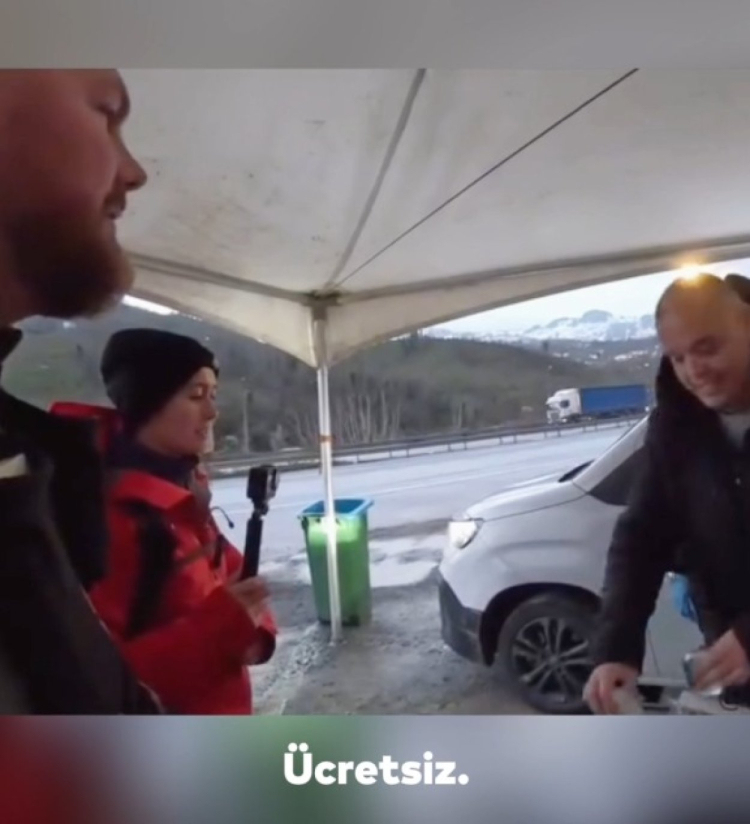 “İngiltere’den yola çıkıp Vietnam’a doğru yürüyen iki gezgini, Perşembe Doğanköy sapağındaki iftar noktamızda misafir ettik. Uzun yolculuklarında yolları Ordu’ya düştü, biz de gönlümüzü ve soframızı paylaştık. Afiyet olsun, yolları açık olsun.”
