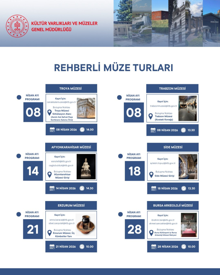 Kültür Varlıkları ve Müzeler Genel Müdürlüğü, Nisan ayı itibarıyla müzelerde uzmanlar eşliğinde rehberli tur etkinliklerinin başlayacağını duyurdu.