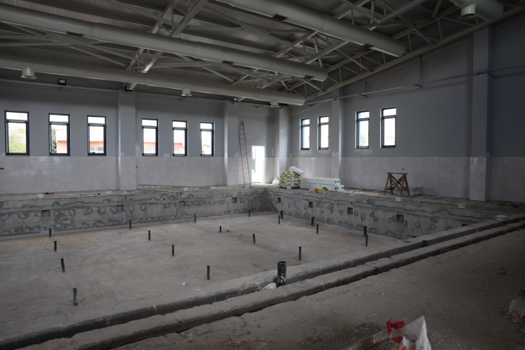 Yarı olimpik yüzme havuzunda kritik aşama geride kaldı. Havuzun iklimlendirme ve havalandırma sistemlerinin montajı bitti, duvarlara seramik kaplama uygulandı, görünmeyen kısımlarında temizleme ve dezenfekte sistemleri kuruldu.
