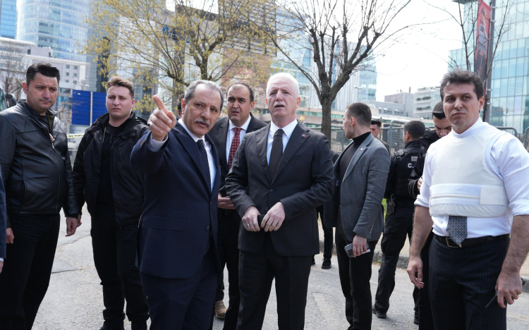İSTANBUL (İGFA) - İstanbul Valisi Davut Gül, Beşiktaş ilçesinde Yapı Kredi Plaza önünde görev yapan emniyet mensuplarına yönelik gerçekleştirilen silahlı saldırının ardından olay yerine giderek incelemelerde bulundu.